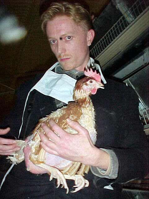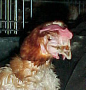 The Action Animal Rescue Team rescued 8 badly debeaked battery hens suffering featherloss at an undisclosed Victorian battery egg factory on Friday July 21, 2000. (property still under surveillance)