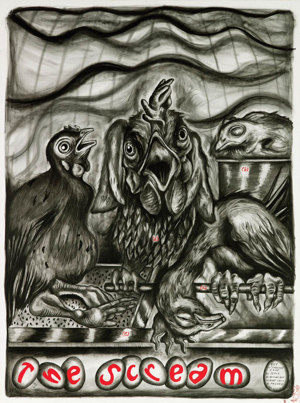 Sue Coe's Screaming Hen in Her Enriched Cage